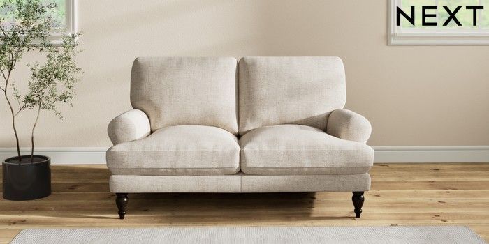 7.2.10 Erin Deep Relaxed Sit 2 Seater Small Sofa Chunky Weave Mid Natural High Classic Turned - Dark | Made Click here to use our website with more accessibility support, for example screen readers