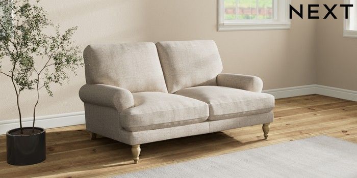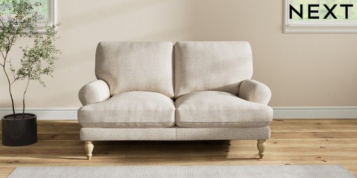 7.2.10 Erin Deep Relaxed Sit 2 Seater Small Sofa Chunky Weave Mid Natural High Classic Turned - Light | Made Click here to use our website with more accessibility support, for example screen readers