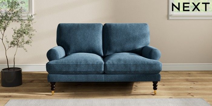 7.2.10 Erin Deep Relaxed Sit 2 Seater Small Sofa Cotswold Chenille Dark Blue High Classic Turned Brass Castor - Dark | Made Click here to use our website with more accessibility support, for example screen readers