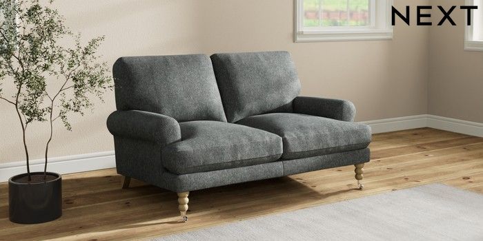 7.2.10 Erin Deep Relaxed Sit 2 Seater Small Sofa Cotswold Chenille Dark Grey High Classic Turned Chrome Castor - Light | Made Click here to use our website with more accessibility support, for example screen readers