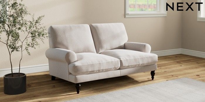 7.2.10 Erin Deep Relaxed Sit 2 Seater Small Sofa Cotswold Chenille Oyster High Classic Turned - Dark | Made Click here to use our website with more accessibility support, for example screen readers