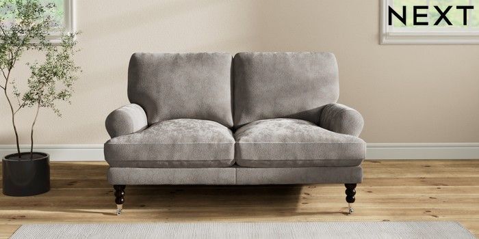 7.2.10 Erin Deep Relaxed Sit 2 Seater Small Sofa Distressed Velour French Grey High Classic Turned Chrome Castor - Dark | Made Click here to use our website with more accessibility support, for example screen readers