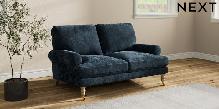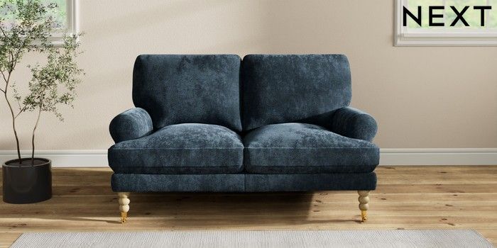 7.2.10 Erin Deep Relaxed Sit 2 Seater Small Sofa Distressed Velour Midnight Blue High Classic Turned Brass Castor - Light | Made Click here to use our website with more accessibility support, for example screen readers