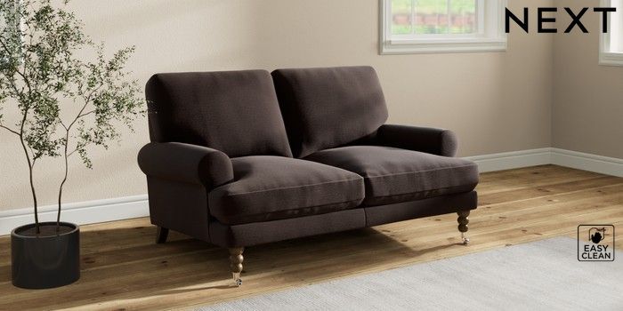7.2.10 Erin Deep Relaxed Sit 2 Seater Small Sofa Fine Chenille Easy Clean Chocolate Brown High Classic Turned Chrome Castor - Mid | Made Click here to use our website with more accessibility support, for example screen readers