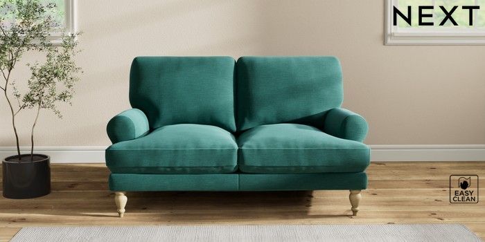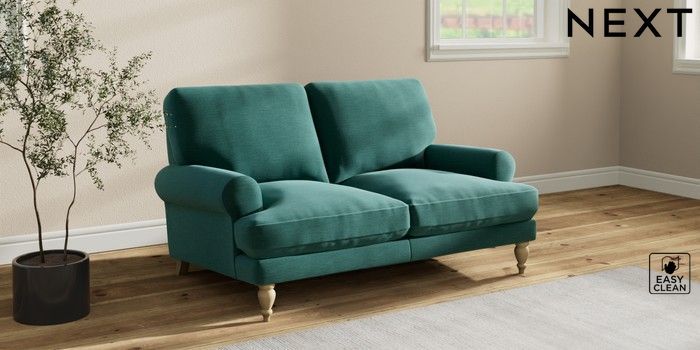 7.2.10 Erin Deep Relaxed Sit 2 Seater Small Sofa Fine Chenille Easy Clean Dark Juniper Green High Classic Turned - Light | Made Click here to use our website with more accessibility support, for example screen readers