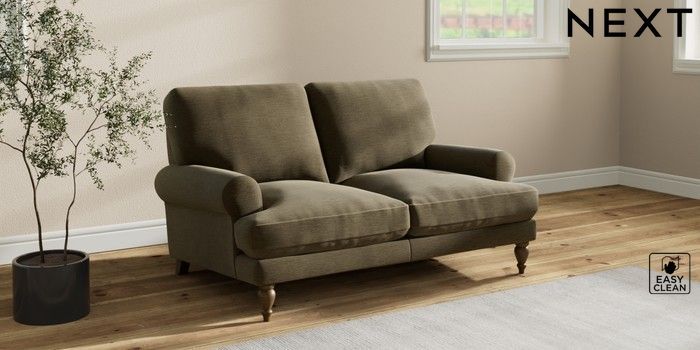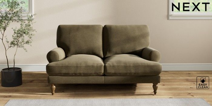 7.2.10 Erin Deep Relaxed Sit 2 Seater Small Sofa Fine Chenille Easy Clean Dark Moss Green High Classic Turned - Mid | Made Click here to use our website with more accessibility support, for example screen readers