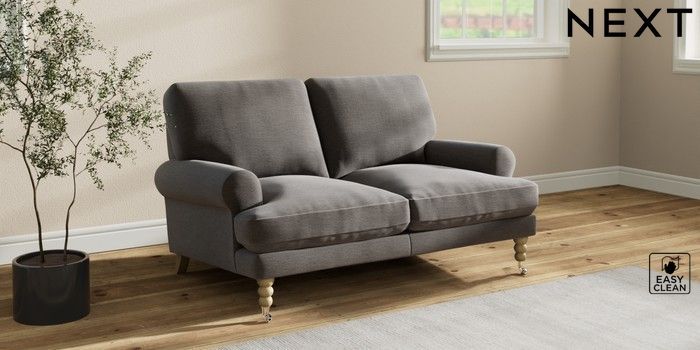 7.2.10 Erin Deep Relaxed Sit 2 Seater Small Sofa Fine Chenille Easy Clean Dark Smoke Grey High Classic Turned Chrome Castor - Light | Made Click here to use our website with more accessibility support, for example screen readers