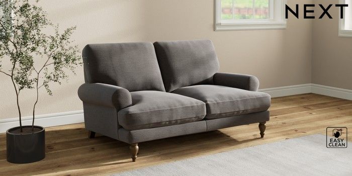 7.2.10 Erin Deep Relaxed Sit 2 Seater Small Sofa Fine Chenille Easy Clean Dark Smoke Grey High Classic Turned - Mid | Made Click here to use our website with more accessibility support, for example screen readers