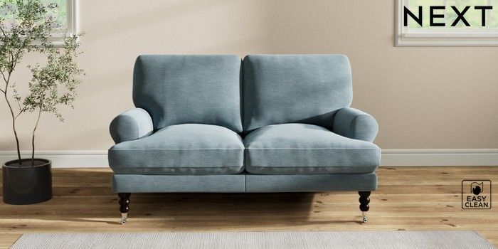 7.2.10 Erin Deep Relaxed Sit 2 Seater Small Sofa Fine Chenille Easy Clean Mid Blue High Classic Turned Chrome Castor - Dark | Made Click here to use our website with more accessibility support, for example screen readers