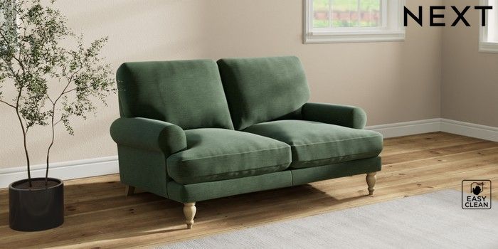 7.2.10 Erin Deep Relaxed Sit 2 Seater Small Sofa Fine Chenille Easy Clean Mid Khaki Green High Classic Turned - Light | Made Click here to use our website with more accessibility support, for example screen readers