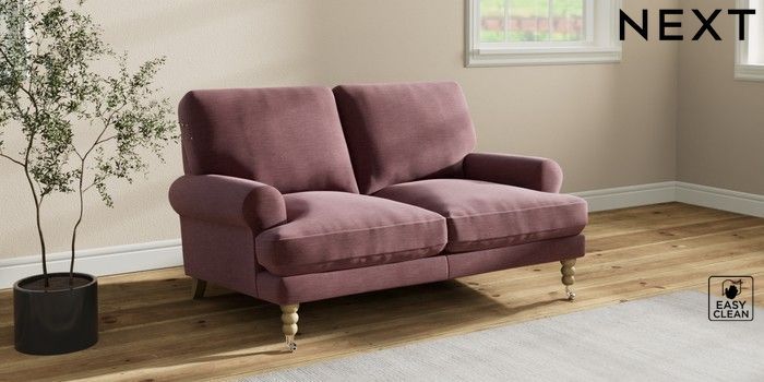 7.2.10 Erin Deep Relaxed Sit 2 Seater Small Sofa Fine Chenille Easy Clean Mid Mulberry Purple High Classic Turned Chrome Castor - Light | Made Click here to use our website with more accessibility support, for example screen readers