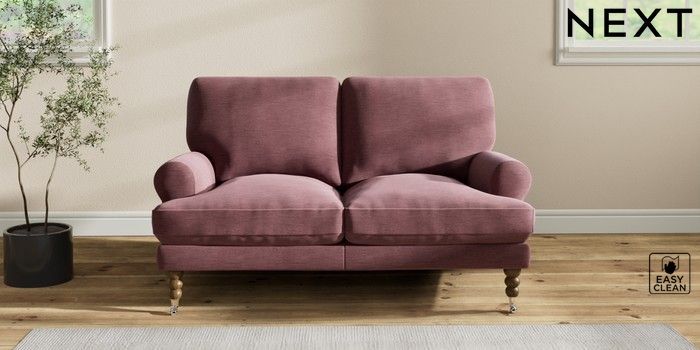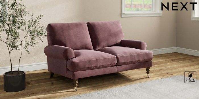 7.2.10 Erin Deep Relaxed Sit 2 Seater Small Sofa Fine Chenille Easy Clean Mid Mulberry Purple High Classic Turned Chrome Castor - Mid | Made Click here to use our website with more accessibility support, for example screen readers