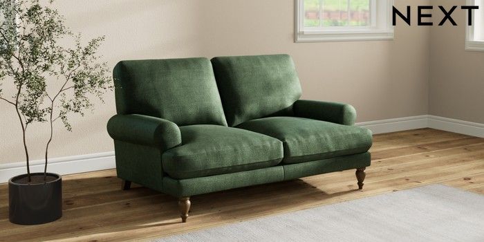 7.2.10 Erin Deep Relaxed Sit 2 Seater Small Sofa Luxe Chenille Dark Green High Classic Turned - Mid | Made Click here to use our website with more accessibility support, for example screen readers