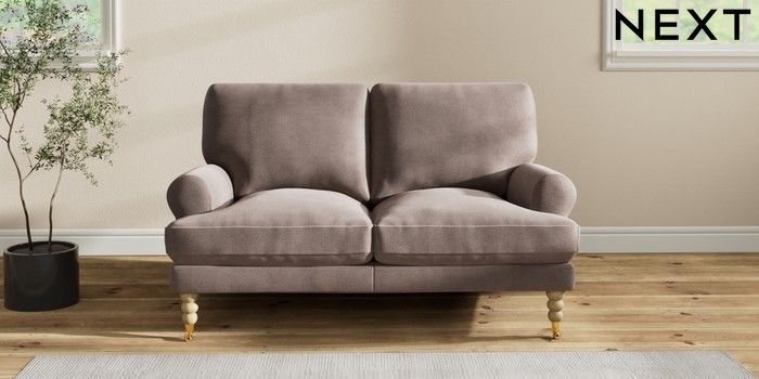 7.2.10 Erin Deep Relaxed Sit 2 Seater Small Sofa Luxe Chenille Mink Brown High Classic Turned Brass Castor - Light | Made Click here to use our website with more accessibility support, for example screen readers