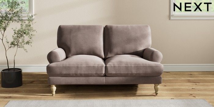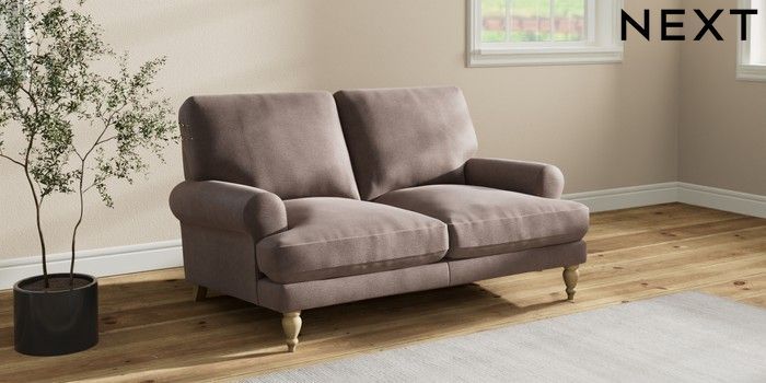 7.2.10 Erin Deep Relaxed Sit 2 Seater Small Sofa Luxe Chenille Mink Brown High Classic Turned - Light | Made Click here to use our website with more accessibility support, for example screen readers