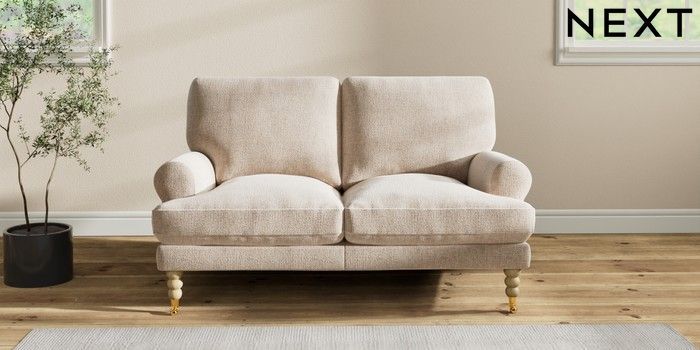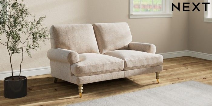 7.2.10 Erin Deep Relaxed Sit 2 Seater Small Sofa Multi Weave Mid Natural High Classic Turned Brass Castor - Light | Made Click here to use our website with more accessibility support, for example screen readers