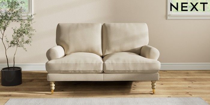 7.2.10 Erin Deep Relaxed Sit 2 Seater Small Sofa Natural Mix Light Natural High Classic Turned Brass Castor - Light | Made Click here to use our website with more accessibility support, for example screen readers