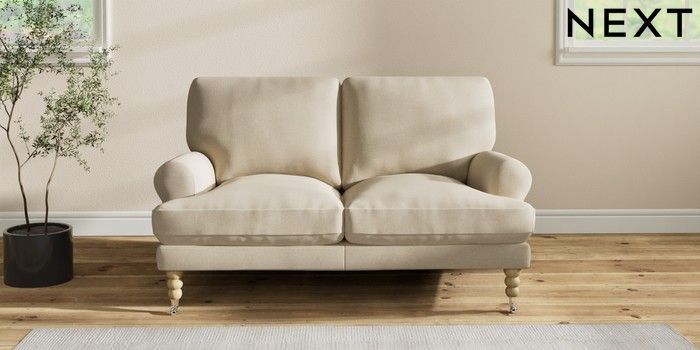 7.2.10 Erin Deep Relaxed Sit 2 Seater Small Sofa Natural Mix Light Natural High Classic Turned Chrome Castor - Light | Made Click here to use our website with more accessibility support, for example screen readers