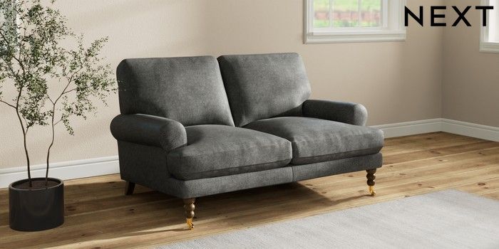 7.2.10 Erin Deep Relaxed Sit 2 Seater Small Sofa Plush Chenille Dark Grey High Classic Turned Brass Castor - Mid | Made Click here to use our website with more accessibility support, for example screen readers