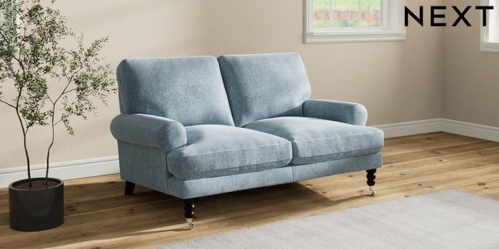 7.2.10 Erin Deep Relaxed Sit 2 Seater Small Sofa Plush Chenille Light Blue High Classic Turned Chrome Castor - Dark | Made Click here to use our website with more accessibility support, for example screen readers