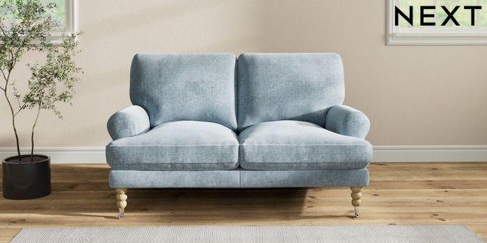7.2.10 Erin Deep Relaxed Sit 2 Seater Small Sofa Plush Chenille Light Blue High Classic Turned Chrome Castor - Light | Made Click here to use our website with more accessibility support, for example screen readers