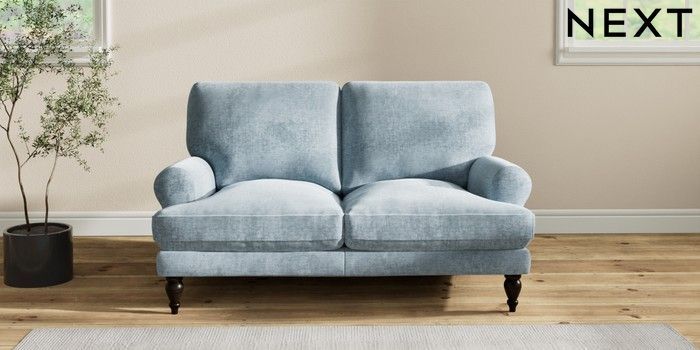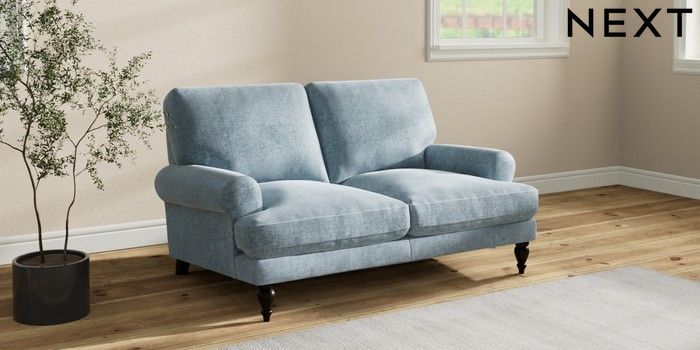 7.2.10 Erin Deep Relaxed Sit 2 Seater Small Sofa Plush Chenille Light Blue High Classic Turned - Dark | Made Click here to use our website with more accessibility support, for example screen readers