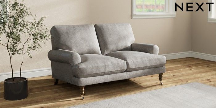 7.2.10 Erin Deep Relaxed Sit 2 Seater Small Sofa Plush Chenille Light Grey High Classic Turned Chrome Castor - Mid | Made Click here to use our website with more accessibility support, for example screen readers