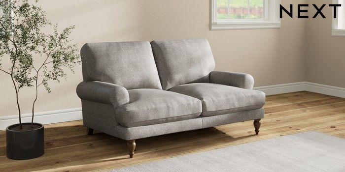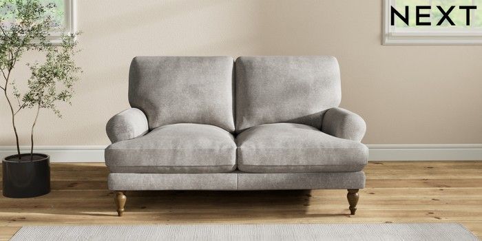 7.2.10 Erin Deep Relaxed Sit 2 Seater Small Sofa Plush Chenille Light Grey High Classic Turned - Mid | Made Click here to use our website with more accessibility support, for example screen readers
