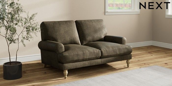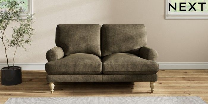 7.2.10 Erin Deep Relaxed Sit 2 Seater Small Sofa Plush Chenille Moss Green High Classic Turned - Light | Made Click here to use our website with more accessibility support, for example screen readers