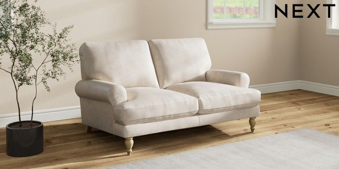 7.2.10 Erin Deep Relaxed Sit 2 Seater Small Sofa Plush Chenille Oyster High Classic Turned - Light | Made Click here to use our website with more accessibility support, for example screen readers