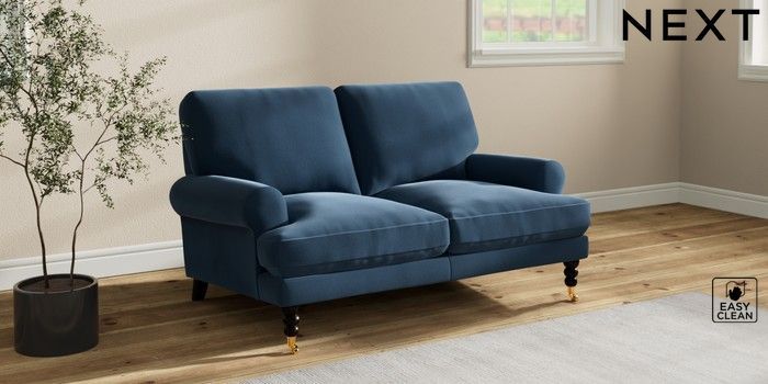 7.2.10 Erin Deep Relaxed Sit 2 Seater Small Sofa Plush Velvet Easy Clean Airforce Blue High Classic Turned Brass Castor - Dark | Made Click here to use our website with more accessibility support, for example screen readers