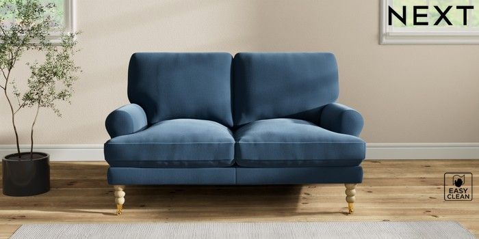 7.2.10 Erin Deep Relaxed Sit 2 Seater Small Sofa Plush Velvet Easy Clean Airforce Blue High Classic Turned Brass Castor - Light | Made Click here to use our website with more accessibility support, for example screen readers