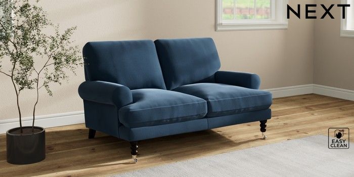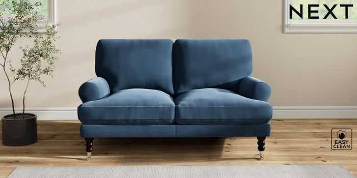 7.2.10 Erin Deep Relaxed Sit 2 Seater Small Sofa Plush Velvet Easy Clean Airforce Blue High Classic Turned Chrome Castor - Dark | Made Click here to use our website with more accessibility support, for example screen readers