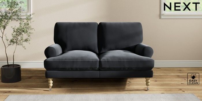 7.2.10 Erin Deep Relaxed Sit 2 Seater Small Sofa Plush Velvet Easy Clean Charcoal Grey High Classic Turned Chrome Castor - Light | Made Click here to use our website with more accessibility support, for example screen readers