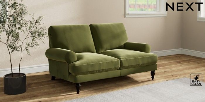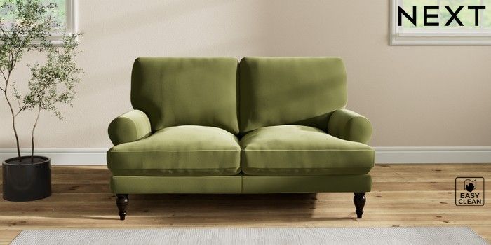 7.2.10 Erin Deep Relaxed Sit 2 Seater Small Sofa Plush Velvet Easy Clean Mid Olive Green High Classic Turned - Dark | Made Click here to use our website with more accessibility support, for example screen readers