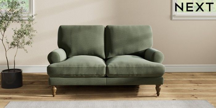 7.2.10 Erin Deep Relaxed Sit 2 Seater Small Sofa Relaxed Linen Look Dark Green High Classic Turned - Mid | Made Click here to use our website with more accessibility support, for example screen readers