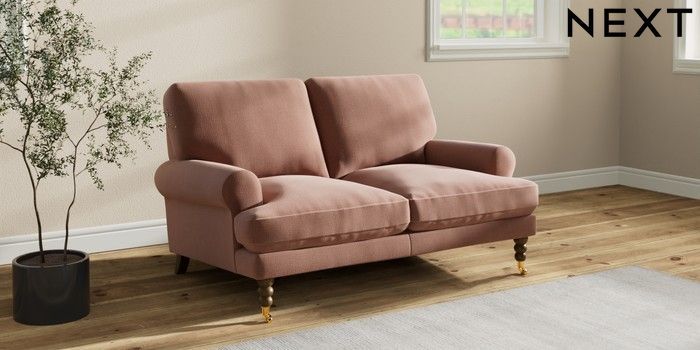 7.2.10 Erin Deep Relaxed Sit 2 Seater Small Sofa Relaxed Linen Look Light Rust Brown High Classic Turned Brass Castor - Mid | Made Click here to use our website with more accessibility support, for example screen readers