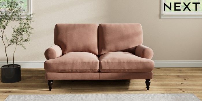 7.2.10 Erin Deep Relaxed Sit 2 Seater Small Sofa Relaxed Linen Look Light Rust Brown High Classic Turned - Dark | Made Click here to use our website with more accessibility support, for example screen readers