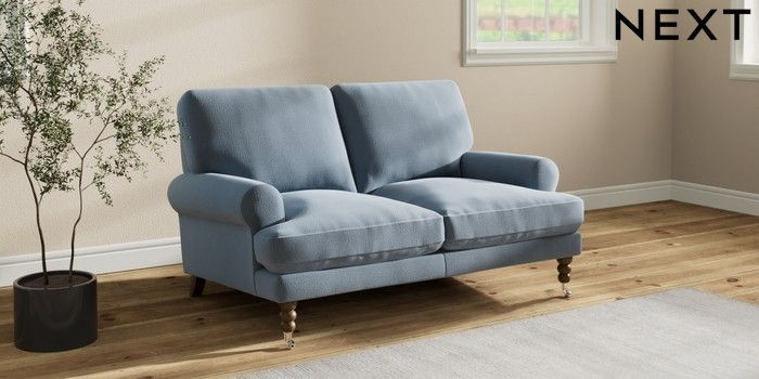 7.2.10 Erin Deep Relaxed Sit 2 Seater Small Sofa Relaxed Linen Look Mid Blue High Classic Turned Chrome Castor - Mid | Made Click here to use our website with more accessibility support, for example screen readers