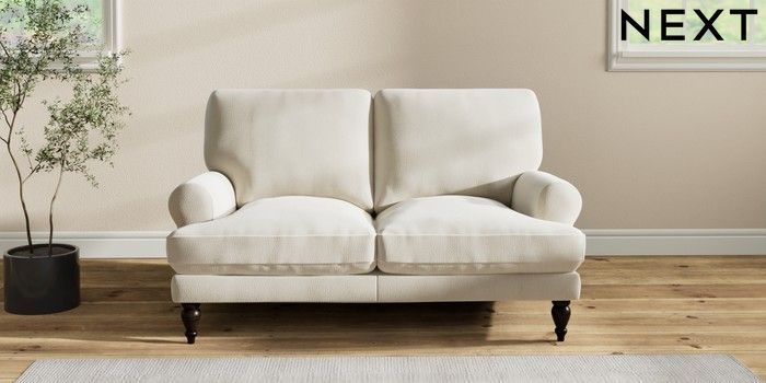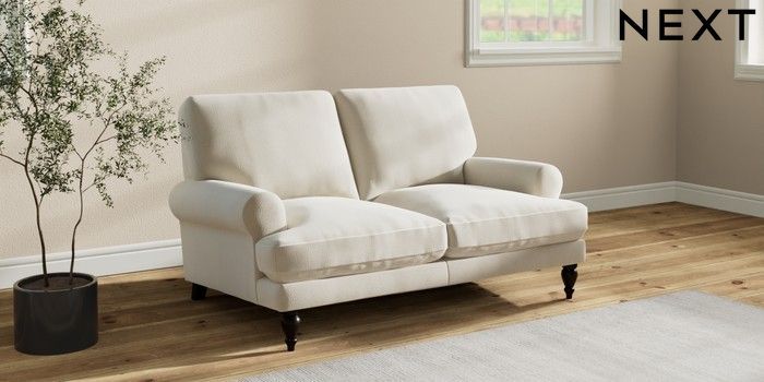 7.2.10 Erin Deep Relaxed Sit 2 Seater Small Sofa Relaxed Linen Look Oyster High Classic Turned - Dark | Made Click here to use our website with more accessibility support, for example screen readers