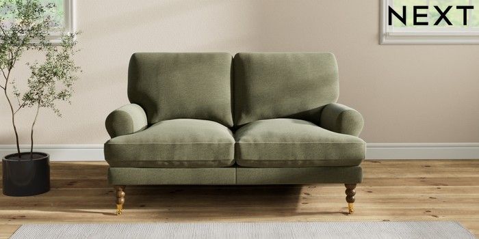 7.2.10 Erin Deep Relaxed Sit 2 Seater Small Sofa Ripple Chenille Mid Moss Green High Classic Turned Brass Castor - Mid | Made Click here to use our website with more accessibility support, for example screen readers