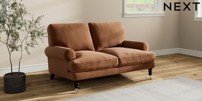 7.2.10 Erin Deep Relaxed Sit 2 Seater Small Sofa Ripple Chenille Mid Rust Brown High Classic Turned Chrome Castor - Dark | Made Click here to use our website with more accessibility support, for example screen readers
