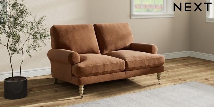 7.2.10 Erin Deep Relaxed Sit 2 Seater Small Sofa Ripple Chenille Mid Rust Brown High Classic Turned Chrome Castor - Light | Made Click here to use our website with more accessibility support, for example screen readers