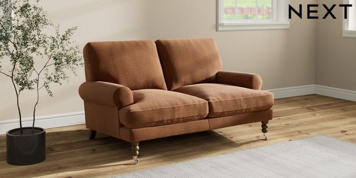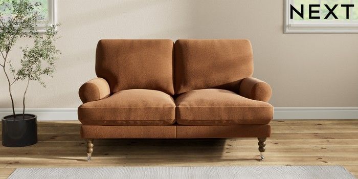 7.2.10 Erin Deep Relaxed Sit 2 Seater Small Sofa Ripple Chenille Mid Rust Brown High Classic Turned Chrome Castor - Mid | Made Click here to use our website with more accessibility support, for example screen readers