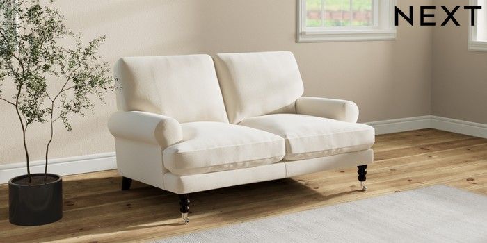 7.2.10 Erin Deep Relaxed Sit 2 Seater Small Sofa Ripple Chenille Oyster High Classic Turned Chrome Castor - Dark | Made Click here to use our website with more accessibility support, for example screen readers