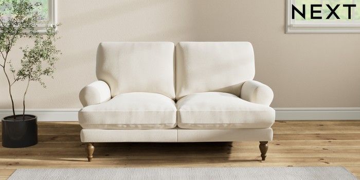 7.2.10 Erin Deep Relaxed Sit 2 Seater Small Sofa Ripple Chenille Oyster High Classic Turned - Mid | Made Click here to use our website with more accessibility support, for example screen readers