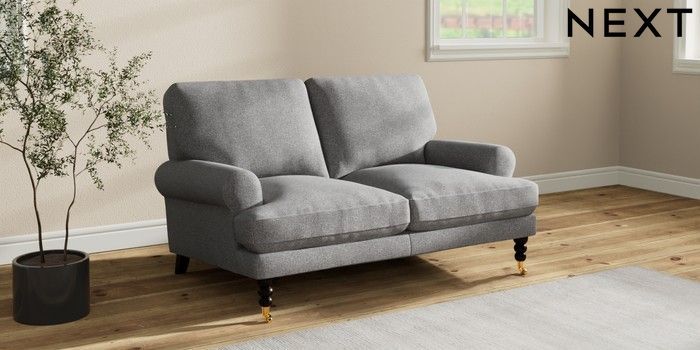 7.2.10 Erin Deep Relaxed Sit 2 Seater Small Sofa Studio Chenille Mid Grey High Classic Turned Brass Castor - Dark | Made Click here to use our website with more accessibility support, for example screen readers