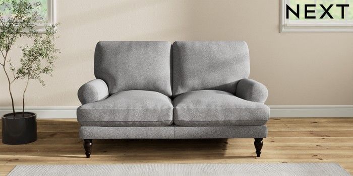 7.2.10 Erin Deep Relaxed Sit 2 Seater Small Sofa Studio Chenille Mid Grey High Classic Turned - Dark | Made Click here to use our website with more accessibility support, for example screen readers