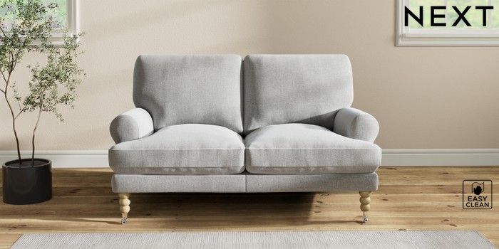 7.2.10 Erin Deep Relaxed Sit 2 Seater Small Sofa Tweedy Blend Easy Clean Light Silver Grey High Classic Turned Chrome Castor - Light | Made Click here to use our website with more accessibility support, for example screen readers