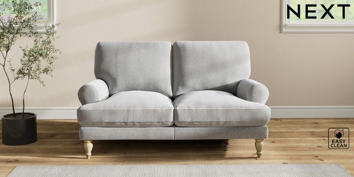 7.2.10 Erin Deep Relaxed Sit 2 Seater Small Sofa Tweedy Blend Easy Clean Light Silver Grey High Classic Turned - Light | Made Click here to use our website with more accessibility support, for example screen readers